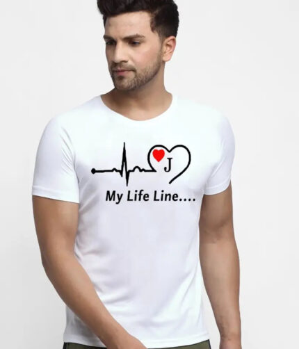 Men White Printed Round Neck Half Sleeve T shirt (S MY LIFELINE)