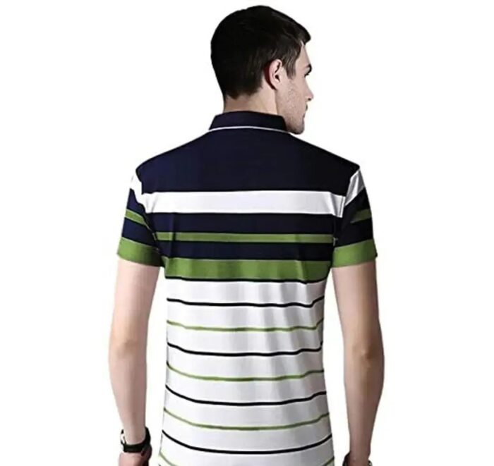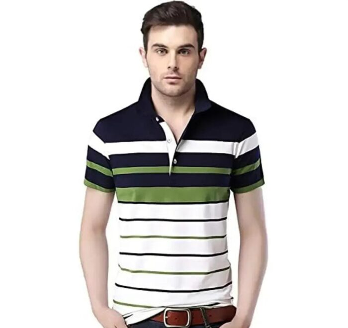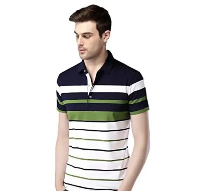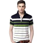 *EYEBOGLER Men’s Trendy Half Sleeves Polo Neck Striped T-Shirt*